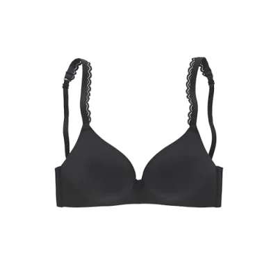 Fashionable bralette bra without underwire Embellished straps with light lace trim Adjustable straps and back closure