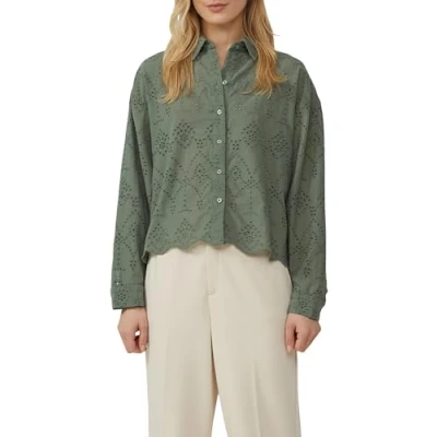 s.Oliver Women's Verkürzte Bluse mit Lochstickerei Blouse, 7369_Dark Sage Green, 18