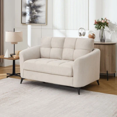 Solna 2 Seater Scandi Style Fabric Living Room Sofa (Beige)