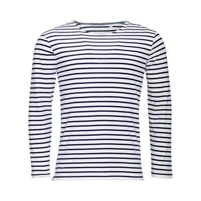 SOLS Mens Marine Long Sleeve Stripe T Shirt (White/Navy) Cotton Size Small
