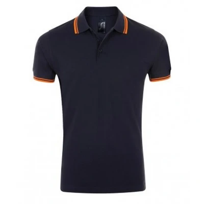 SOLS Mens Pasadena Tipped Short Sleeve Pique Polo Shirt (French Navy/Neon Orange) Multicolour Cotton Size Small