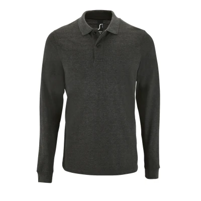 SOLS Mens Perfect Long Sleeve Pique Polo Shirt (Charcoal Marl) Cotton Size X Large