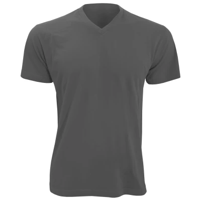 Tubular knit. Taped back neck. Ribbed V neck. Twin needle sleeves and hem. Fabric weight: 150 gsm. Material: 100% ringspun semi-combed cotton, Grey marl: 85% cotton/15% viscose, Ash: 98% cotton/2% viscose. Chest (to fit): S(36/38), M(38/40), L(41/42), XL(43/44), XXL(45/47).