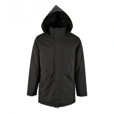 Unisex jacket. Showerproof and windproof. Full length zip. Concealed adjustable hood. Two zip pockets. Elasticated cuffs. Drawcord hem. Fabric: 210T Polyester. Chest (to fit inches): S(36/38), M(38/40), L(41/42), XL(43/44), XXL(45/47).