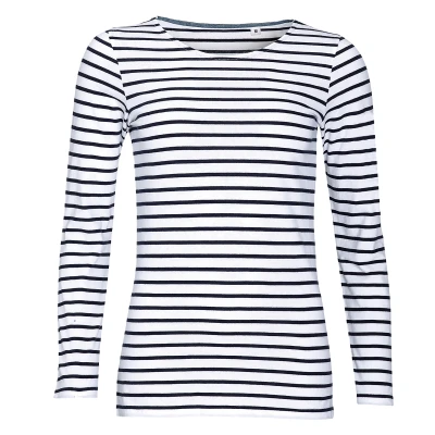 SOLS Womens/Ladies Marine Long Sleeve Stripe T Shirt (White/Navy) Cotton Size Medium