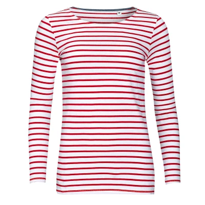 SOLS Womens/Ladies Marine Long Sleeve Stripe T Shirt (White/Red) Cotton Size Large