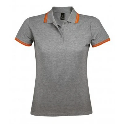SOLS Womens/Ladies Pasadena Tipped Short Sleeve Pique Polo Shirt (Grey Marl/Orange) Multicolour Cotton Size Medium