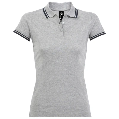 SOLS Womens/Ladies Pasadena Tipped Short Sleeve Pique Polo Shirt (Heather Grey/Navy) Multicolour Cotton Size Small