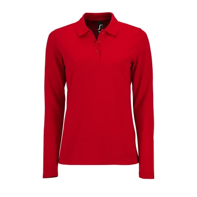 SOLS Womens/Ladies Perfect Long Sleeve Pique Polo Shirt (Red) Size Medium