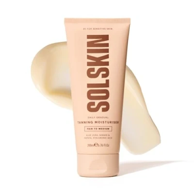 SOLSKIN Gradual Tanning Moisturiser with Aloe, Hyaluronic Acid & Vitamin E, Hydrating Daily Body Lotion for Sensitive Skin, Buildable 200 ml (Light to Medium)