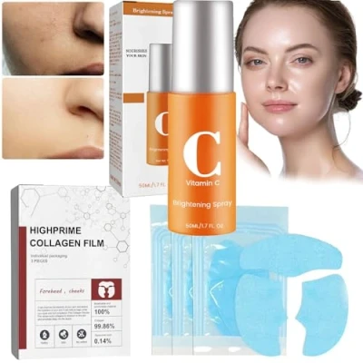 Anti-aging Hydrating---Collagen face mask and spray kit can tighten the skin to make the skin better elastic.Anti-age collagen mask can reduce wrinkles and fine lines for smoother, younger-looking skin.Skin collagen film absorbs quickly, face mask hydrating sheet revitalized skin. Replenish the collagen needed by the skin---High-quality collagen membrane provides sufficient collagen to the skin, reduces eye sagging, and improves skin elasticity, firmness and volume. Collagen Absorbing Films--- dissolvable collagen face mask esy to Absorbing, Light texture, refreshing and non-greasy, breathable and comfortable. High Prime Collagen Film Face Mask---Instant skin collagen mask or all skin types, dissolving collagen films use a mild formulaed. Suitable for Dry skin & oily skin. How to Use---Wash your face, Apply the Collagen Film Mask on the area concerned, Spray some collagen mist, Leave it to penetrate the skin,Use it regularly for best results.