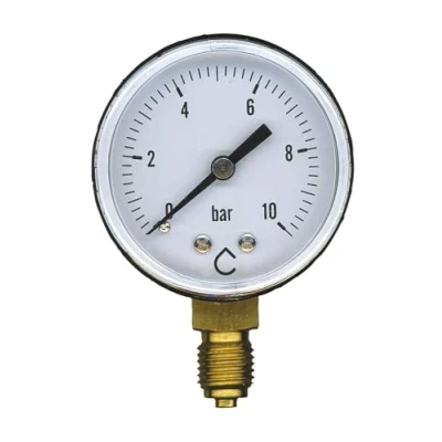 Use: pressure measurement of any fluid and gas that is not high viscosity, crystallizing, or corrosive to copper and tin alloys 0 to 10 bars, diameter 50, male 8/13, accuracy class 1.6 (according to DIN 16005 standard). Features: ABS shockproof case, Plexiglas glass, brass connector, sensitive element and copper alloy mechanism, tin alloy welds, black plastic needle and white plastic dial, Weight: 0.1433004703 Pounds, Manufacturer: Somatherm