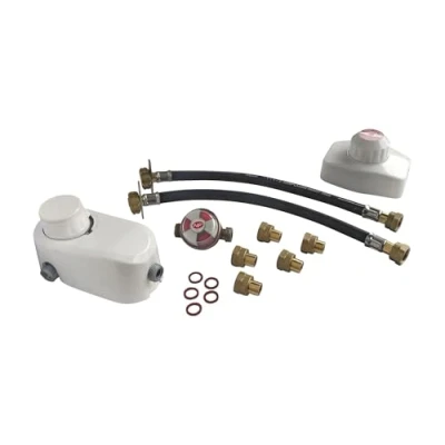 Kit for connecting 2 propane bottles to one device. The lyres are connected to the bottles and placed on the inverter. The gas supplies the device through the regulator. When a bottle is empty, simply switch the inverter to switch the 2nd bottle. The inverter has an indicator that shows the remaining reserve of the bottle. Powers one device by 2 propane bottles Exclusively on propane installation Precautions for use: the connection of the bottles with the lyres via a rotating nut, the lyres are connected to the inverter. The inverter is connected to the regulator by a 20/150 propane hose (not included). The regulator is connected to the device by a propane hose (not included) Technical conditions: Exclusively on propane bottles; Maximum flow rate: 1.3 kg/h, Weight: 2.866009406 Pounds, Manufacturer: Somatherm