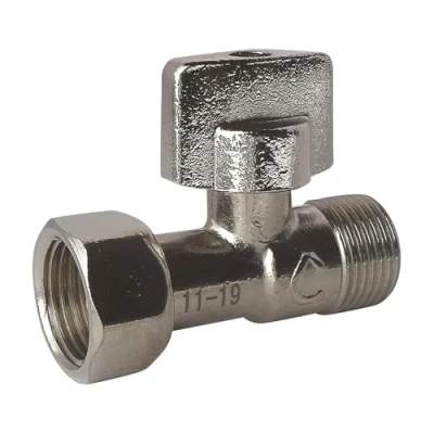 Connection input M12/17 (3/8'') - output twist nut 12/17 (3/8''). - Nickel-plated finish Toilet accessories - Connection of the pipe to the toilet flush tank. Axis sealing by O-rings - Straight tap - 1/4 turn closure - Quick filling of the tank - Working pressure up to 6 bar Maximum pressure: 6 bar, max. temperature 90 °C. Connection 12/17, toilet tank, Manufacturer: Somatherm