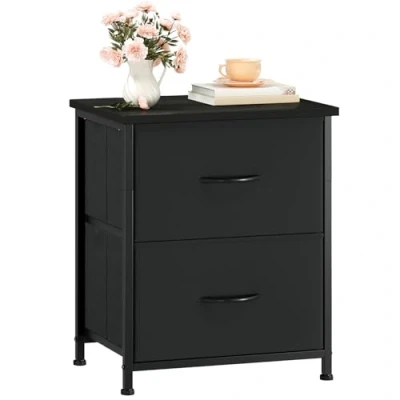 Somdot Black Bedside Table, Bedroom Cabinet with 2 Fabric Drawers, Nightstand Side Table for Kids Living Room Dorm,