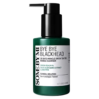 Some By Mi 30 Days Bye Bye Blackhead Miracle Green Tea-Tox Bubble Cleanser – 120g Refresh and detoxify your skin with the Some By Mi 30 Days Bye Bye Blackhead Miracle Green Tea-Tox Bubble Cleanser 120g, a deep-cleansing foam designed to help remove blackheads, excess oil, and impurities while calming and hydrating your skin. Infused with green tea extract and enriched with gentle yet effective ingredients, this cleanser helps purify pores, balance oil production, and leave your complexion feeling clean, smooth, and refreshed. Ideal for oily, combination, or congested skin types, this bubble cleanser foams into a rich lather that penetrates deep into pores to dissolve dirt and buildup without stripping the skin. Key BenefitsHelps remove blackheads and impurities from pores Deep-cleansing foam clears excess oil and buildup Green tea extract soothes and calms irritation Hydrates while cleansing without dryness Leaves skin soft, balanced, and refreshed Ideal for oily and combination skin