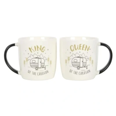 Something Different Set of 2 New Bone China Mugs King and Queen Couples Caravan Mug from The Happy Camper Range
