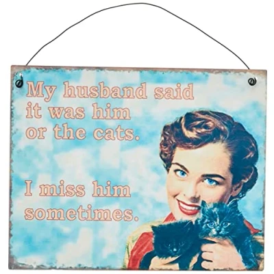 Fun metal sign Retro design with a distressed vintage feel Hanging wire attached Tongue in cheek humour