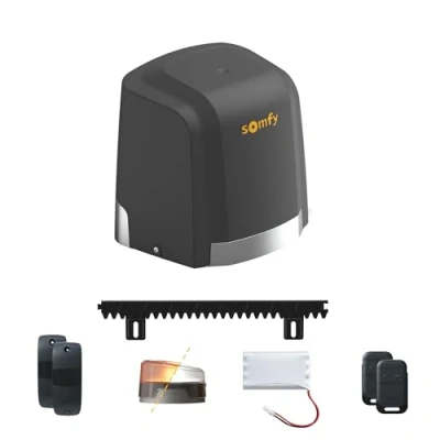 Includes 1 Slidymoove 300 motor, 2 keypop remote controls, 1 backup battery, 4 m low rack, 1 flashing light, and 1 set of photocells Suitable for sliding gates made of wood, PVC, aluminium or iron, with a maximum length of 5 m and a maximum weight of 300 kg New for 2024: thanks to the low rack and the new positioning notches on the engine, this motorisation kit is compatible with a rack cover Easy to install: thanks to pre-programmed remote controls, coloured terminal block; installation template and pencil tip that simplify motor installation Easy to use: it has automatic closing and pedestrian mode that allows partial opening of the gate Secure: In case of obstacle detection by photocells, the motor automatically stops the running of the gate for greater safety. Motor has manual unlocking Compatible with TaHoma Smart Control (switch) and Connectivity Kit (not included), to open and close the gate remotely from the TaHoma app on your smartphone Made in France, Weight: 16.975594174 pounds, Manufacturer: Somfy