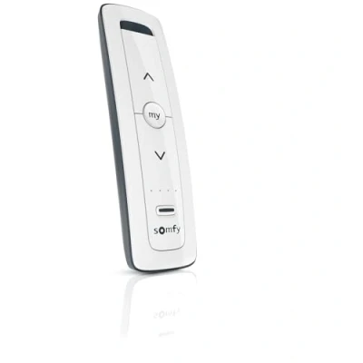 For controlling up to 5 devices or groups of motorised devices: roller shutters, blinds or lighting equipped with a receiver using RTS wireless technology. Enjoy more comfort every day by controlling multiple devices from your sofa with a single remote control. It has 3 main functions: up/stop/down and the favourite position "My", which allows you to drive the roller shutter or blind to the saved favourite position with one click. Easy to install with the "PROG" button on the back to sync the remote control with your motorized RTS devices. Sleek and modern design that fits perfectly into your interior and ergonomic curves for easy handling. Comes with a wall mount and 1 battery. IMPORTANT: This remote control is only compatible with Somfy RTS devices and will not work with Somfy IO technology. Please confirm your system type before placing an order., Manufacturer: Somfy