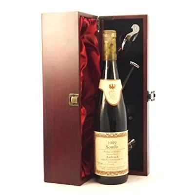 Somlo Ausbruch 1989 vintage wine in a silk lined wooden box with four accessories, 1 x 750ml
