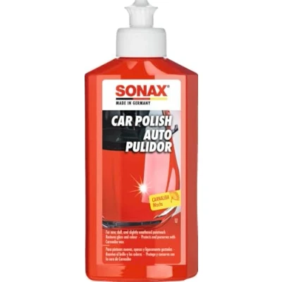 "Micro-abrasives gently smooth the paintwork surface, eradicate finest roughnesses, and restore the gloss and colour." "Carnauba wax provides long-lasting protection against climatic influences." For new, dull, and slightly weathered paintwork. Scope of delivery: 1 x SONAX Car Polish (250 ml) | Item-No. 03001000-544 SONAX passion for cars - made in Germany. It moves you, make it shine!