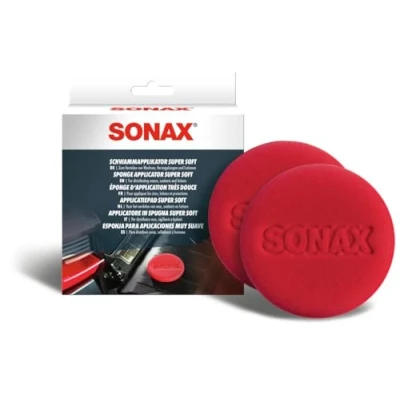 SONAX SPONGE APPLICATOR SUPER SOFT (2 Pieces) gently applies and distributes waxes, sealants lotions on surfaces, Machine washable Item No. 04171410