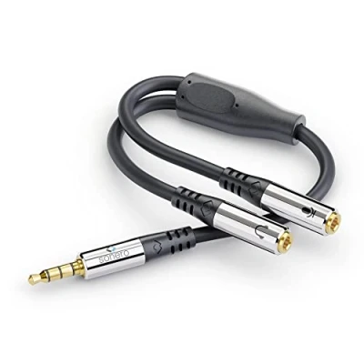 Sonero® Headset Adapter, Y Adapter Cable, 1 x 3.5 mm Male to 2 Female, Headphones and Microphone Jack Connection, Black, 0.25 m