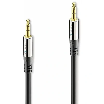 Universal Sonero premium stereo audio cable, 3.5 mm plug to 3.5 mm jack plug, for maximum stereo audio quality with any device with 3.5 mm AUX connection. Optimal jack audio cable for HiFi systems, iPhones, iPads, smartphones, MP3 players, tablet PCs, cars and other stereo devices. Gold-plated contacts and high-quality metal connectors provide flexible kink protection. Thanks to high-purity copper conductor and triple shielding, our premium cable offers the greatest possible protection against interference, outer diameter: 4.0 mm PVC. It provides the perfect performance when transmitting stereo audio signals. Box contents: 2.00 m Sonero Premium 3.5 mm jack stereo audio cable, colour: black