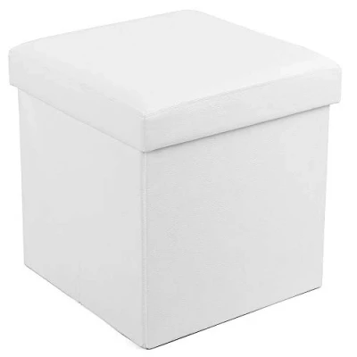 [Stylish and Sturdy] The thick synthetic leather surface and fine stitching of this storage ottoman showcase a refined look; Reinforced with sturdy MDF panels, this ottoman can effortlessly carry up to 300 kg [Indulge in Comfort, Enjoy Easy Cleaning] With its high-density foam that resists deformation, the seat provides comfortable sitting. Cleaning is a breeze thanks to the water-resistant synthetic leather surface, which can be easily wiped clean with a cloth [Ample Storage] Measuring 38 x 38 x 38 cm and offering a capacity of 43L, this cube footstool is perfect for storing your bed sheets, pillows, blankets, magazines, and more [Easy to Set Up & Fold Away] The foldable design of this storage bench allows for quick setup in just a few seconds; When not in use, it effortlessly folds flat for convenient storage, making it a space-saving solution for your home [Versatile Uses] Transform this folding ottoman into a storage box, footstool, or even a coffee table; You can position it anywhere you desire, be it in the living room, the end of your bed, the foyer, or under a window