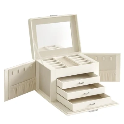 SONGMICS 4 Tier Jewellery Box, Lockable Organiser with Handle, 3 Drawers, Travel Case Mirror, Storage, Gift Idea, Cloud White Cover, Cream Lining JBC159W02