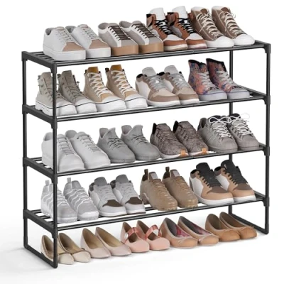 [Large Capacity] Sized at 92 x 30 x 74 cm, this 4-tier shoe rack holds up to 16 pairs of men's or 20 pairs of women's shoes. It helps keep your shoes organised and easily accessible [Sturdy and Durable] Thick metal tubes connected by quality plastic connectors make a sturdy shoe shelf. Each tier supports up to 5 kg, giving your shoes strong support [Tool-Free Assembly] The assembly is easy, simply put the numbered parts together by hand with the plastic connectors. No tools are required! [Easy to Clean] With a smooth coating, this shoe storage organiser is easy to wipe clean with a soft damp cloth, saving you time and energy [Fits Various Places] Simple lines and a space-saving figure make this metal shelf a perfect storage solution for your hallway, bedroom, wardrobe, or even your living room