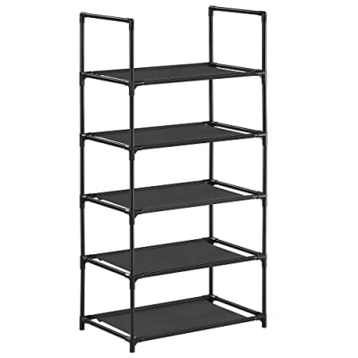 SONGMICS 5 Tier Shoe Rack, Shelf, Storage Organiser, Space Saving, 28 x 45 89 cm, Metal Frame, Non Woven Fabric Shelves, for Hallway, Bedroom, Black LSH005B02