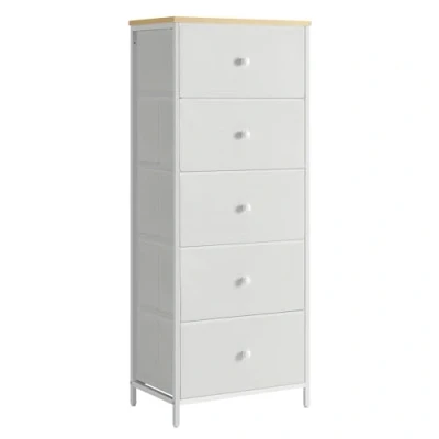 SONGMICS Chest of Drawers Bedroom, Drawer Storage Unit, Dresser with 5 Fabric Drawers, Metal Frame, Tall and Slim, for Closet, Camel Yellow Cream White LTS315W01
