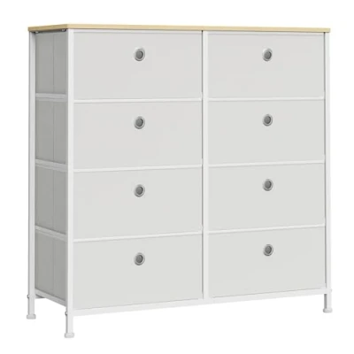 SONGMICS Chest of Drawers, Storage Unit with 8 Easy Pull Fabric Dresser, Organiser Metal Frame, Tabletop, for Closet, Cream White and Oak LTS024W57