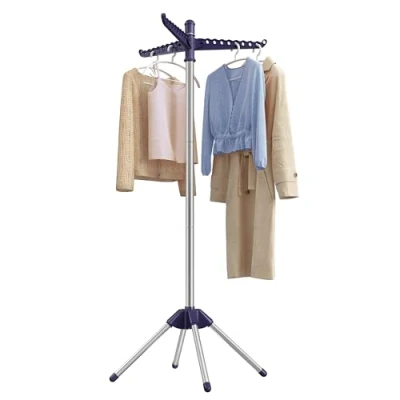 [Foldable & Space-Saving] Standing at 65 x 65 x 150 cm during use, this clothes drying rack takes up little space, perfect for small spaces. Fold the arms and legs into a small size of 5.5 x 5.5 x 182.5 cm, it will stay out of the way after use [Rotate the Arms] The arms let you easily hang up your clothes for air drying. The arms can also rotate 360° so you can easily access the clothes on the other side by simply turning them around [Large Capacity] Designed with holes on the arms for holding hangers in place, this laundry rack can hold up to 27 pieces of clothes and other accessories; total max. static load capacity: 33 lb [Easy to Set Up and Carry Around] The rack comes in 7 parts, making it easy to set it up or take it down in a minute, so you can bring it with you for drying clothes when camping [Stable and Solid] The main pole and legs are made of stainless steel for both rust resistance and sturdiness while the 4 legs offer more stability compared with those with 3 legs