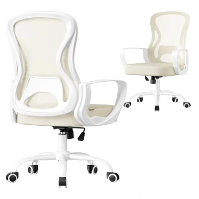 SONGMICS Ergonomic Office Chair, Mesh Swivel Desk Chair with Lumbar Support, Rocking Function, Armrests, for Home Office, Bedroom, Cappuccino Beige and Cloud White OBN043LH03
