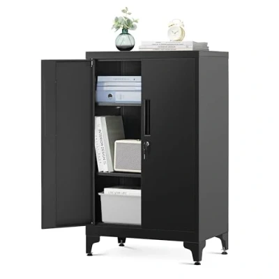 【VERSATILE】With its simple colour and design, this storage cabinet seamlessly complements your home decor. It can be used in various rooms—for files and documents in your office, storing bottles and glasses in your kitchen, or even tools in the garage 【SPACIOUS & ADJUSTABLE SHELVES】This 40 x 60 x 90 cm (D x W x H) file cabinet provides plenty of storage space for your documents, files, and more. The two shelves can be adjusted in height, making it ideal for storing items of varying sizes 【STURDY AND DURABLE】This garage cabinet is constructed from rust-resistant, powder-coated steel, ensuring a strong and sturdy structure. Its surface is both water-resistant and easy to clean, allowing you to maintain its brand-new appearance for years 【PREMIUM STEEL LOCK】The steel lock, which comes with 2 included keys, is both rustproof and wear-resistant, ensuring that all of your personal belongings are securely protected 【EASY ASSEMBLY】 Clear instructions and labelled parts make building this metal storage cabinet a breeze
