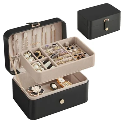 [Compact and Portable] Our 11 x 16 x 8 cm jewellery case easily fits in your bag or suitcase, allowing you to bring your favourite pieces on the go. Perfect for travel or business trips. Pack and carry with ease! [Categorised Storage Solution] Featuring a lid with 5 necklace hooks, a removable top jewellery tray for stud earrings and rings, and a bottom compartment for bracelets and larger accessories, this versatile jewellery box meets all your storage needs [Thoughtful Details] This jewellery box boasts removable cross-shaped dividers to accommodate larger jewellery, a detachable earring plate for customisable storage, and a secure magnetic button for reliable closure [Soft Velvet Lining] Our travel jewellery case comes with a lining of delicate velvet, offering perfect protection. This ensures your precious jewellery remains free from scratches and other possible damage, preserving its original beauty and shine [No-Fail Gift] An exquisite appearance and high functionality meet to create this unique jewellery box for travel. So give this jewellery case to your dearest friend or treat yourself instead!
