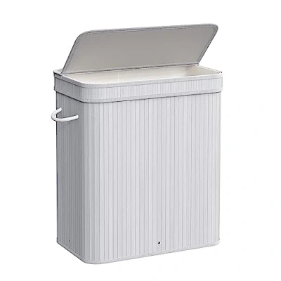SONGMICS Laundry Hamper with Lid, 100 L Bamboo Basket, Removable Machine Washable Handles, for Room, Bedroom, Washroom, Grey LCB063G01