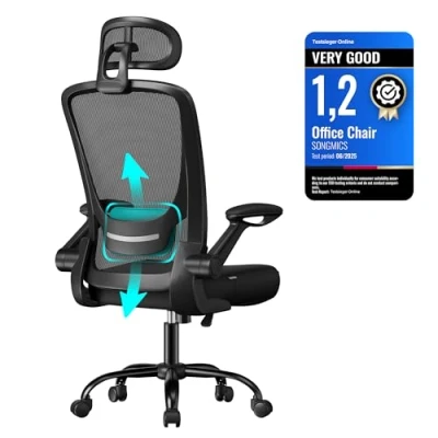 Ergonomic Design: The S-shaped backrest contours to your body, and the height-adjustable lumbar and headrest offers effective support for your back and neck while reducing your fatigue Flexible & Space-Saving: The seat height is adjustable (46-54 cm) for your different needs. The 90-105° tilt mechanism can be activated for relaxation. The armrests can be flipped up to store the chair under the desk to save space Comfortable Sitting: The 8 cm thick premium foam and the 53 cm soft seat cushion relieve pressure on the hips for all-day-long working; the mesh fabric is breathable to keep you cool even after sitting for a long time Robust and Stable: With the premium gas cylinder and sturdy metal base, this office chair can support up to 120 kg and offers strong and stable support Heavy-Duty Swivel Castors: Nylon castors are wear-resistant, floor-friendly, and have passed the 100,000-cycle swivel test