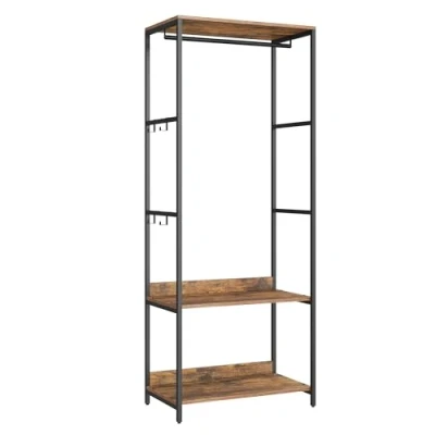 SONGMICS Portable Clothes Wardrobe, Foldable Closet, Rack Freestanding, Closet Organiser, with Hanging Rods, Storage Shelves, Removable Hooks, 40 x 60 181 cm, Rustic Brown RGR006B01