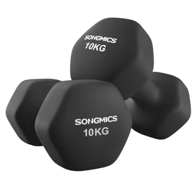 SONGMICS Set of 2 Dumbbells, x 10 kg Hand Weights with Neoprene Coating, Hexagonal Dumbbells Pair, Home Workout, Fitness Training Exercise, Ink Black SYL110B01