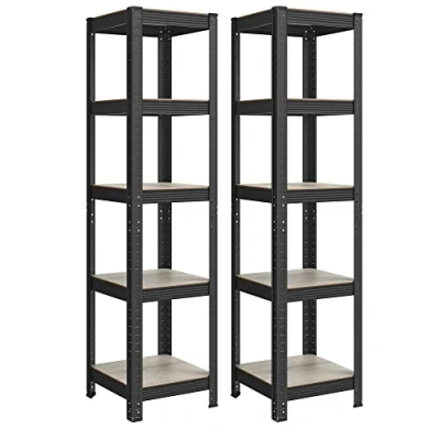 [Sturdy Structure] Sturdy particleboard shelves are supported by the steel frame with additional reinforcement bars, each shelf can hold up to 80 kg, and safely support paints, tools, and fitness equipment [Rustic Look] The shelves of the shelving unit are finished with greige wood grain, adding a stylish effect to any space so you can say goodbye to the boring look [Divided into 2 Units] The shelving unit can be divided into two separate low shelves, one placed in the kitchen as a stand for the oven and microwave, the other in the study for holding books, plants, printer, and more [Adjustable Shelves] The assembly of the storage shelf is effortless, as parts can be connected together with slot-in joints, and the height between shelves can be adjusted for flexible storage [Anti-Tip Kit] The included anti-tip kit helps you fix the shelf to the wall so that the shelving is more stable for safe use