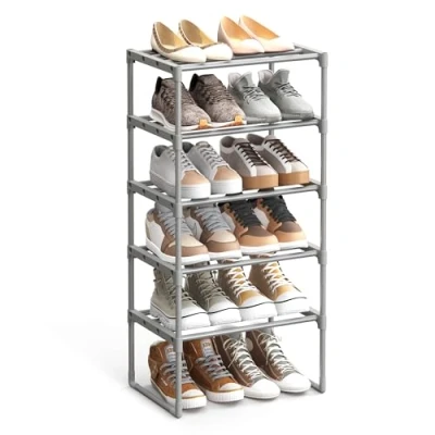 Amazon Marketplace[Large Capacity] Sized at 30 x 45 x 89 cm, this 5-tier shoe rack holds up to 10 pairs shoes. It helps keep your shoes organised and easily accessible [Sturdy and Durable] Thick metal tubes connected by quality plastic connectors make a sturdy shoe shelf. Each tier supports up to 5 kg, giving your shoes strong support [Easy to Assemble] Thanks to a simple structure, numbered parts, and easy-to-follow instructions, you’ll set up this shoe organiser in no time and without any tools! [Stackable] Simply remove the crossbars on top, then you can stack one shoe storage organiser on top of the other to create more space [Fits Various Places] Simple lines and a space-saving figure make this metal shelf a perfect storage solution for your hallway, bedroom, wardrobe, or even your living room