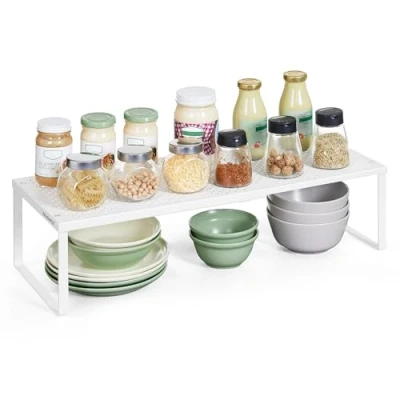 Extendable & Spacious: Adjust the width of this kitchen shelf between 38 cm and 60 cm, providing plenty of storage space for your spices—an ideal solution for maximizing your storage space Versatile: Place this cupboard shelf in kitchen cabinets or on countertops to store kitchen utensils, in the study to house office utensils and decorations, or in the entryway to keep your shoes off the floor Stylish Design: The sleek lines and chic perforated pattern add a touch of charm to the countertop shelf, making it a perfect fit for different interior styles Reliable Weight Capacity: Made from premium steel, this rack supports up to 21 kg at its full 60 cm width, easily accommodating spices, canned goods, or small appliances like toasters Quick, Hassle-Free Setup: With straightforward instructions and a user-friendly design, you’ll have this rack ready to use in just a few minutes—no complicated assembly required