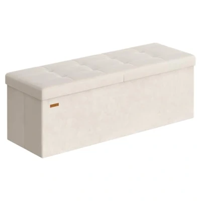 SONGMICS Storage Ottoman, Foldable Bench, 38 x 110 cm, Flipping Lid, 300 kg Load Capacity, for Hallway, Living Room, Bedroom, Velvet Fabric, Cappuccino Beige LSF078LH02
