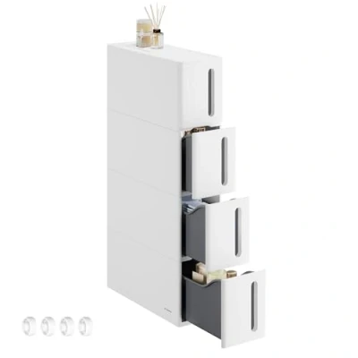 JoybuyThe SONGMICS Kitchen Storage Rack is a 45x17x84cm narrow plastic tower with 4 deep drawers, ideal for small spaces. Its waterproof, mobile with wheels, and perfect for organizing kitchens, bathrooms, or living areas.