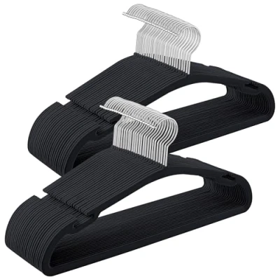 【ANTI-SLIP SURFACE】These coat hangers feature a soft, non-slip velvet surface that ensures your garments stay in place. Say goodbye to clothes slipping off and ending up in a tangled mess on the floor 【PRACTICAL SHOULDER NOTCHES】Designed with wide shoulder notches, these clothes hangers are perfect for hanging camisoles, dresses, and other strappy garments, preventing them from falling to the floor 【STRONG SUPPORT】Made from premium ABS plastic and a metal hook, each velvet hanger can support up to 5 kg. Feel confident hanging heavy coats and winter clothes without worrying about the hangers breaking 【SPACE-SAVING DESIGN】At only 0.5 cm thick, these clothes hangers take up less space, enabling you to hang more clothes in your limited wardrobe space 【THOUGHTFUL DETAILS】Featuring 360° swivel hooks, these hangers make it easy to hang and access your clothes. The curved shoulder design prevents unsightly bumps, ensuring your garments maintain their shape