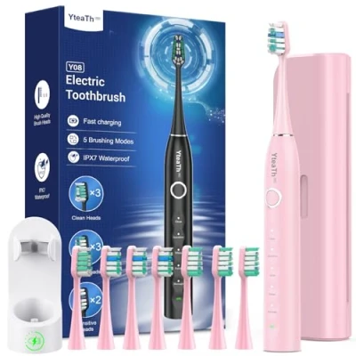 Exceptional cleaning: Achieves up to 10 times more plaque removal, enhancing oral health and effectively preventing cavities compared to a manual toothbrush. This sonic electric toothbrush technology utilizes powerful vibrations at 50,000 pulses per minute to propel toothpaste bubbles into the hard-to-reach areas between your teeth and gums, ensuring a thorough yet gentle cleaning experience 120 Days Battery Life: With use twice a day for 2 minutes each time, a 3.5-hour charge can provide up to 120 days of usage. When the red LED charging indicator lights up, it is time to recharge the electric toothbrush using the included USB C cable 8 Replacement Brush Heads for 24 Months: 8 replacement toothbrush heads feature bristles in three distinct colors, making it easy to distinguish each head when used by different family members. It is recommended to replace the toothbrush head every 3 months, giving you a total of 24 months of use from the included brush heads. This eliminates the need to frequently purchase new brush heads Scientific and Effective Brushing: Our sonic toothbrush features an interval pause every 30 seconds to remind you to move to a different area of your mouth, and it signals when the 2-minute brushing time is up. This helps ensure that you adhere to the scientifi brushing time and achieve a thorough clean. Suitable for adults and kids Included Accessories – Travel Case and Wall Mount: The travel case allows you to hygienically store and easily carry your electric toothbrush while traveling, making it ideal for maintaining oral health on the go. The toothbrush holder wall mounted keeps the sonic toothbrush dry, reduces scale buildup, and saves countertop space